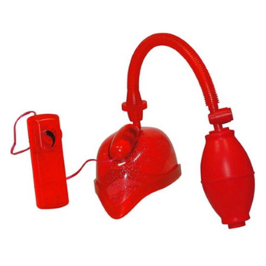 Vibrējošs masturbātors. Anatomiski pielāgota forma kaunuma lūpu stimulēšanai ar iebūvētu vakuumpumpi un vibroolu. Ar pulti regulējama vibrācijas intensitāte;